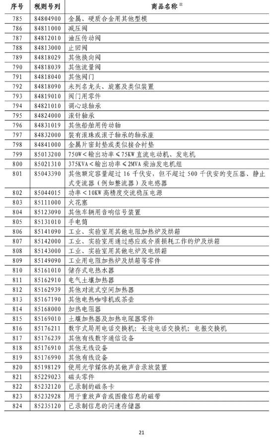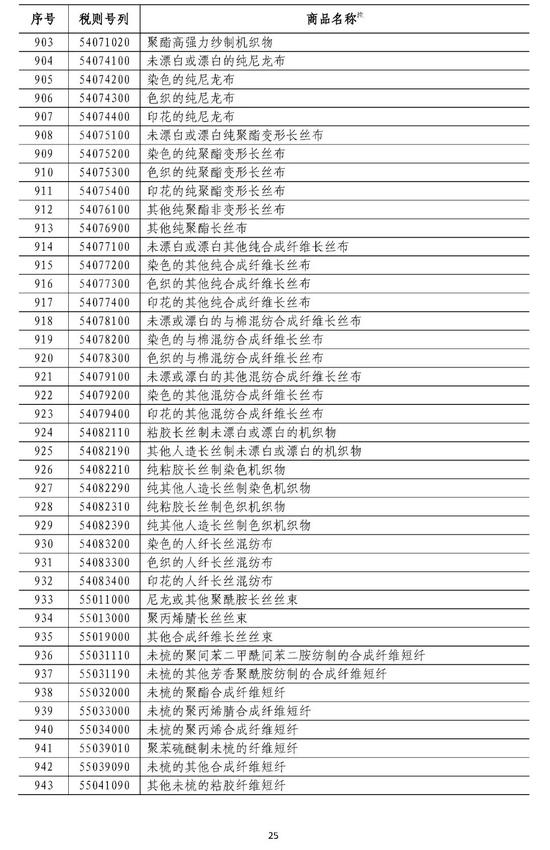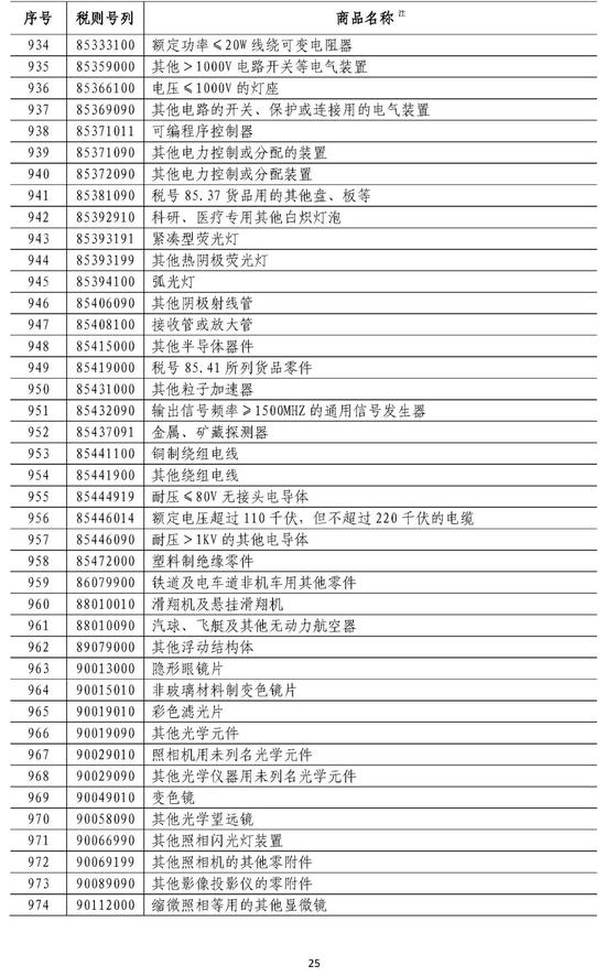 附件1:对美加征25%关税商品清单