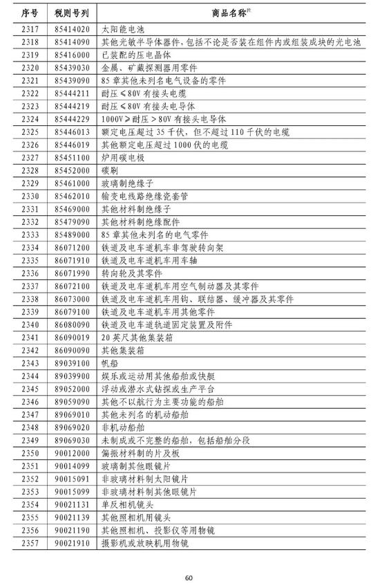 8月1日,美贸易代表莱特希泽发表声明,拟将对2000亿美元中国产品的征税税率由10%提高至25%。美方的措施肆意违反世界贸易组织相关规则和国际义务,进一步侵犯中方根据世界贸易组织规则享有的合法权益,严重威胁中方经济利益和安全。 对美国持续违反国际义务对中国造成的紧急情况,为捍卫中方自身合法权益,中国政府依据《中华人民共和国对外贸易法》等法律法规和国际法基本原则,对原产于美国的5207个税目约600亿美元商品,加征25%-5%不等的关税(详见附件)。 最终措施及生效时间将另行公告。