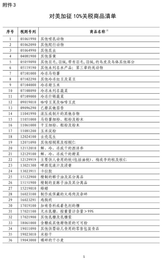 附件3:对美加征10%关税商品清单